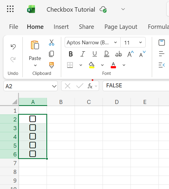 - Example: Select cells A2 to A6 to create a five-step checklist.