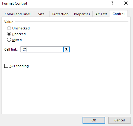 - Link the Checkbox to a Cell (to Retrieve TRUE/FALSE):
