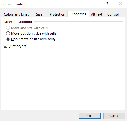 - Right-click checkbox → Format Control → Properties tab → Select “Don’t move or size with cells.”