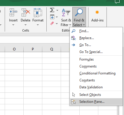 - Go to Home > Editing > Find and Select > Selection Pane.