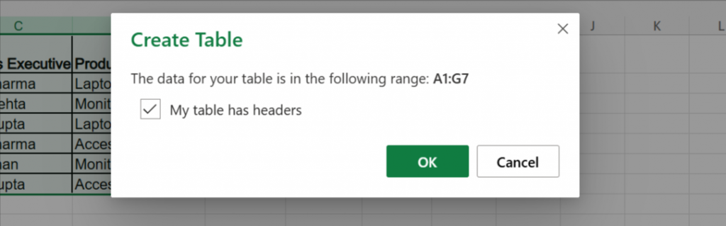 - Press Ctrl + T on your keyboard. (Note for Web Users: If you are using Excel Online, press Ctrl + L instead, as Ctrl + T will open a new browser tab.)
