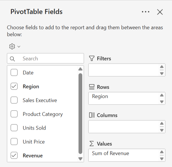 - A "PivotTable Fields" pane will appear on the right side of your new worksheet screen.