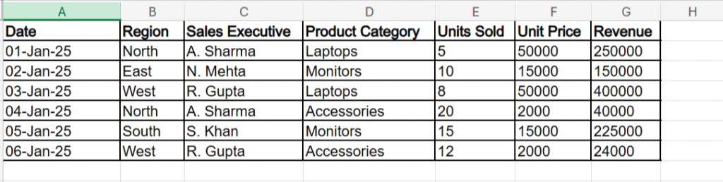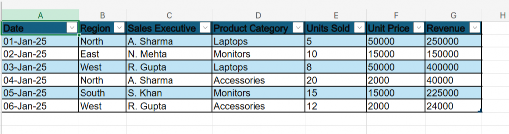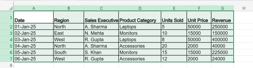 - Why it fails: Merged cells often prevent you from sorting, filtering, or selecting data columns properly later on.