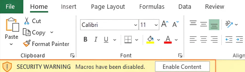 - Step 2: Look for the yellow Security Warning bar (also known as the Message Bar) at the top of the sheet, just below the ribbon.