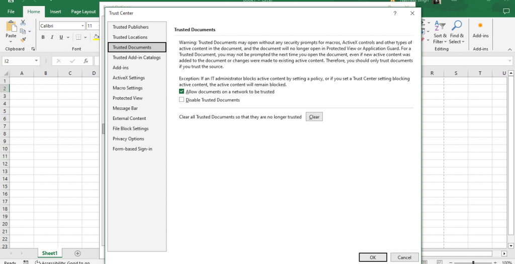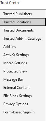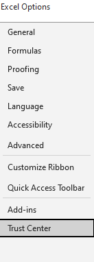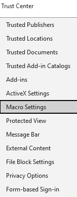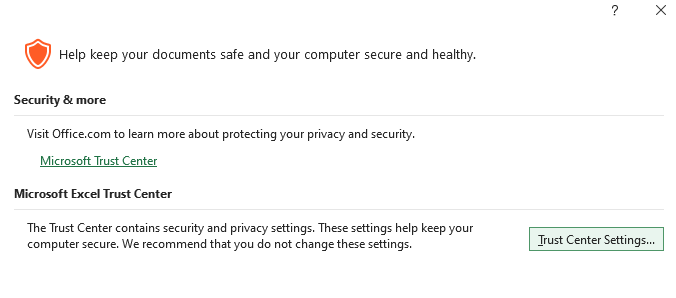 - Go to File > Options > Trust Center > Trust Center Settings.