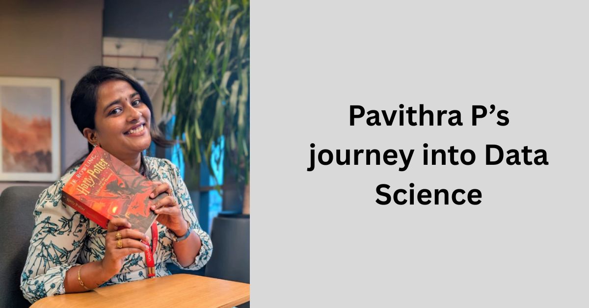 Born and raised in Chennai and currently living in Bangalore, Pavitra began her career in the IT sector.“I completed my B.Sc. in Computer Science and MCA while working at TCS, and although I was initially interested in becoming a developer, after joining TCS, I was inspired to become a data scientist,”she says.