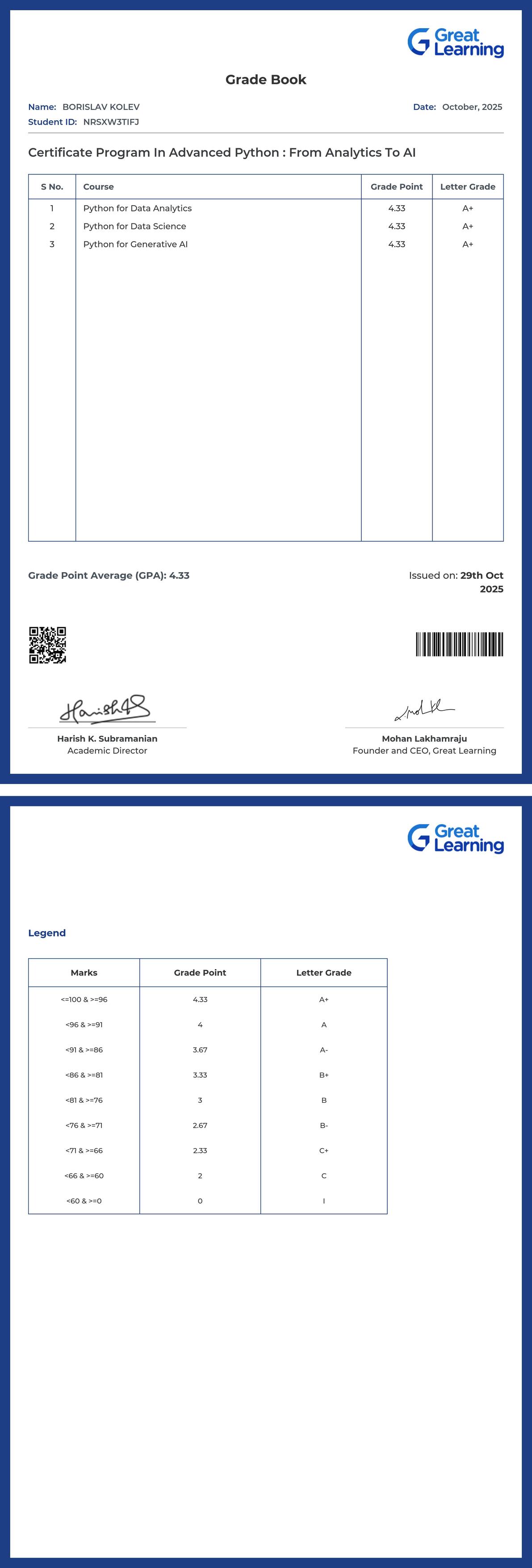 CERTIFICATE PROGRAM IN ADVANCED PYTHON : FROM ANALYTICS TO AI